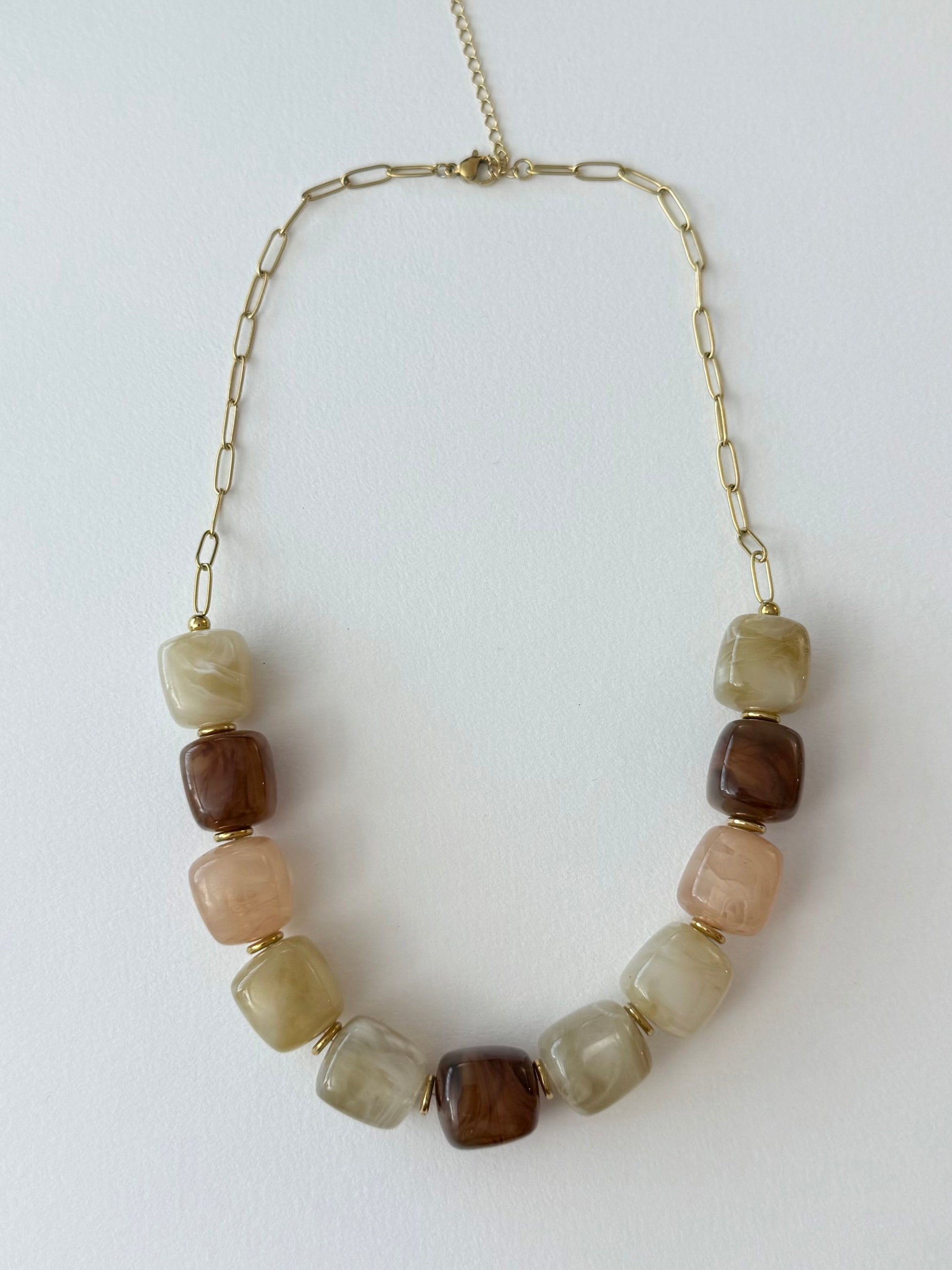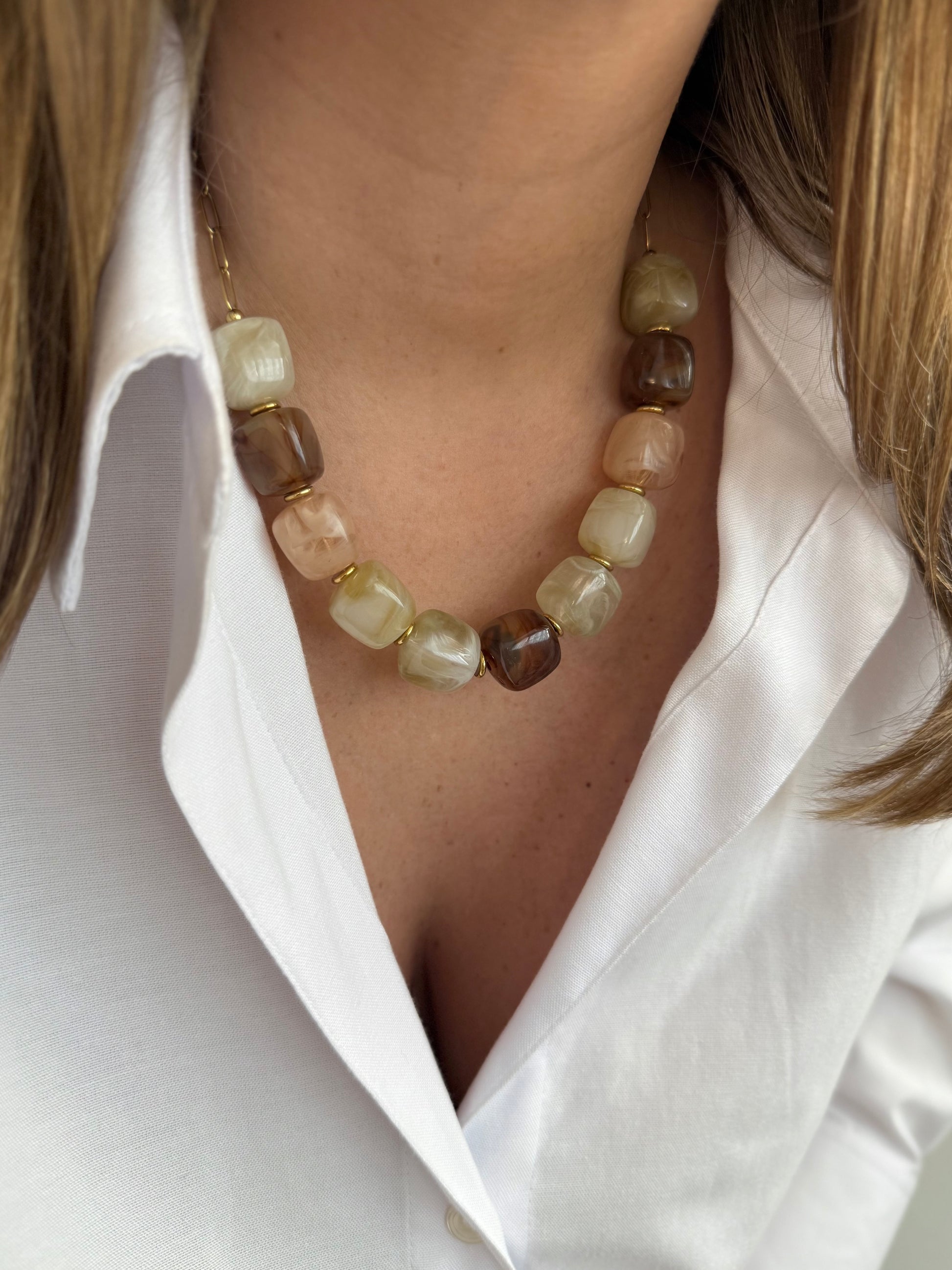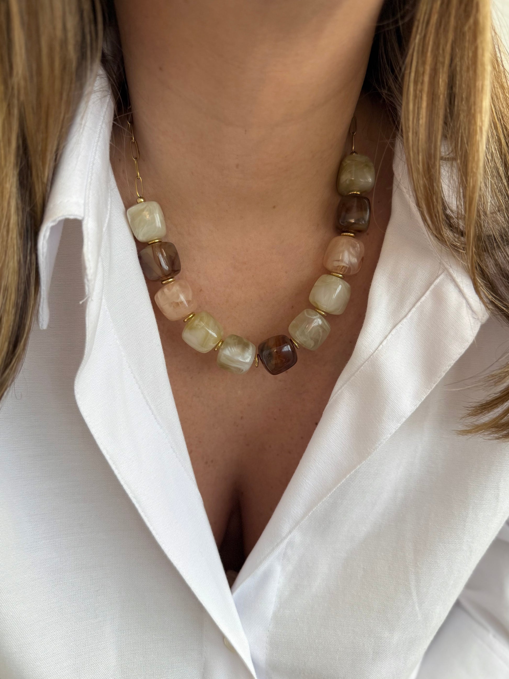 - Collier en acier inoxydable et perles en résine