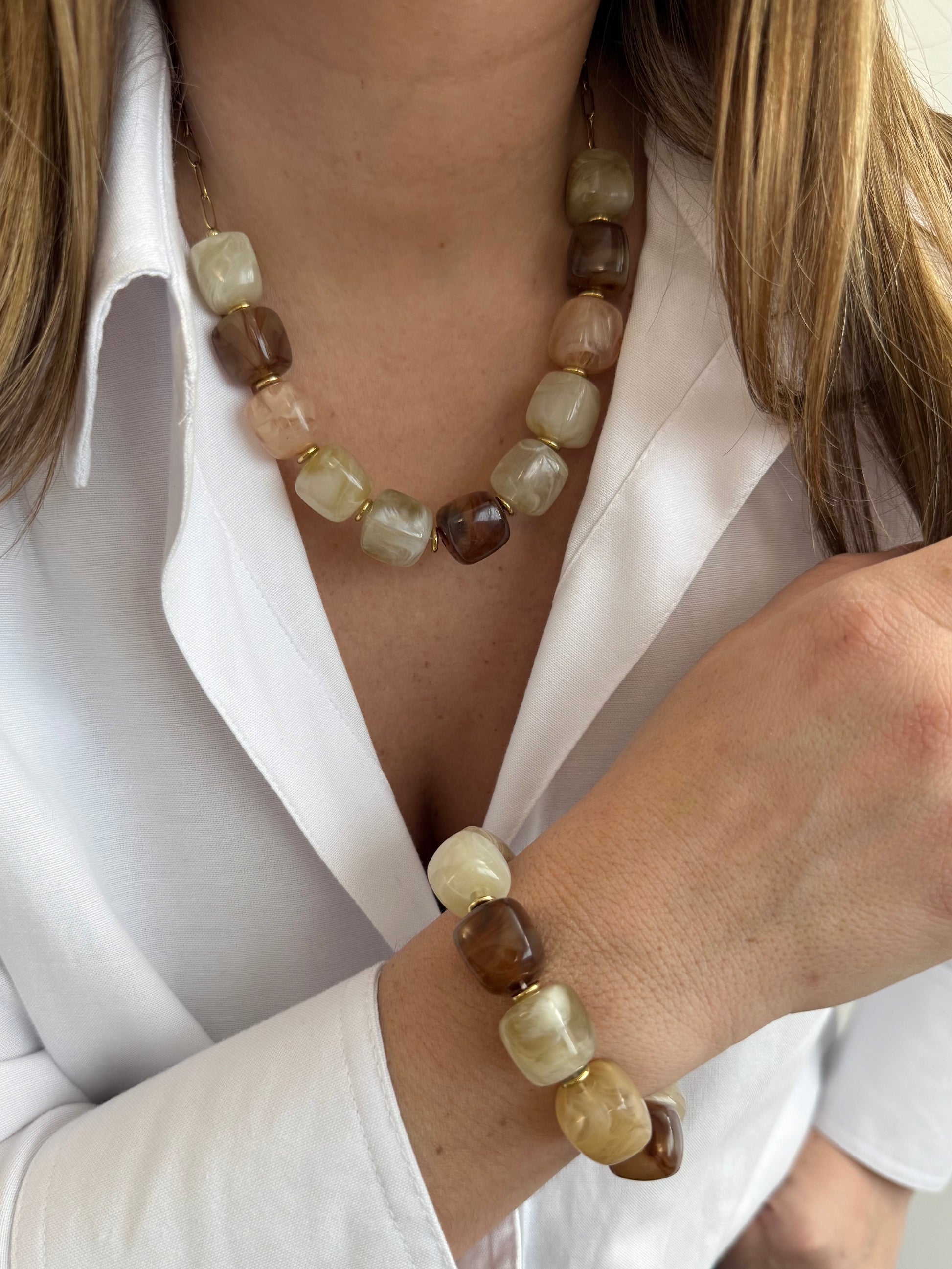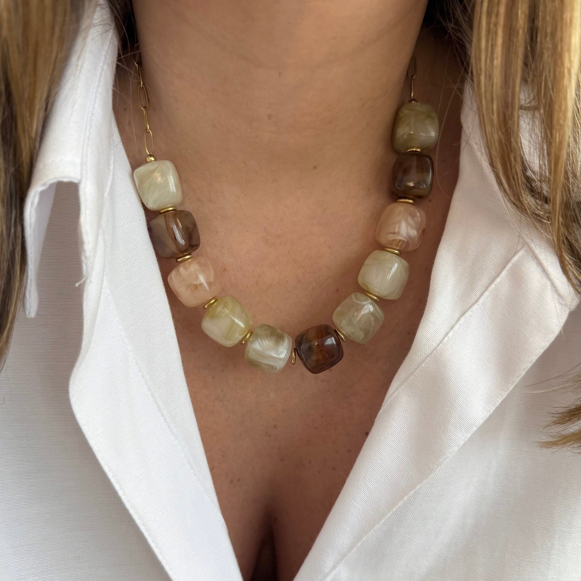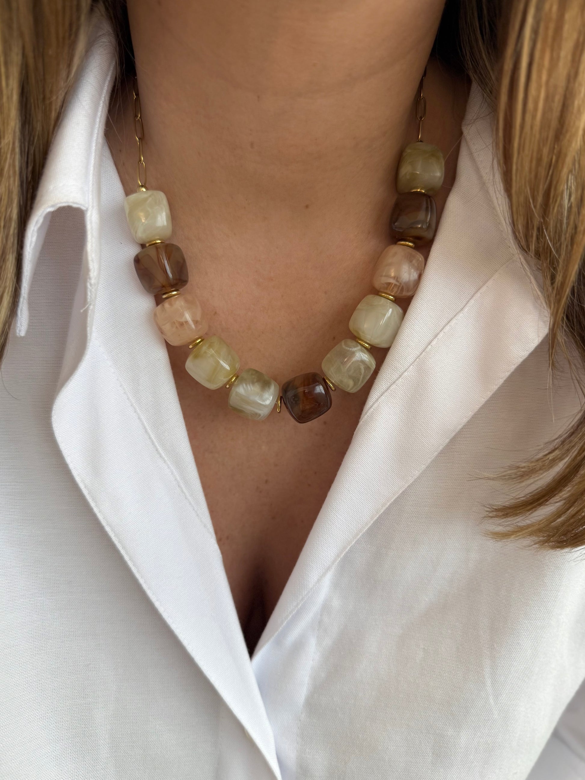 - Collier en acier inoxydable et perles en résine