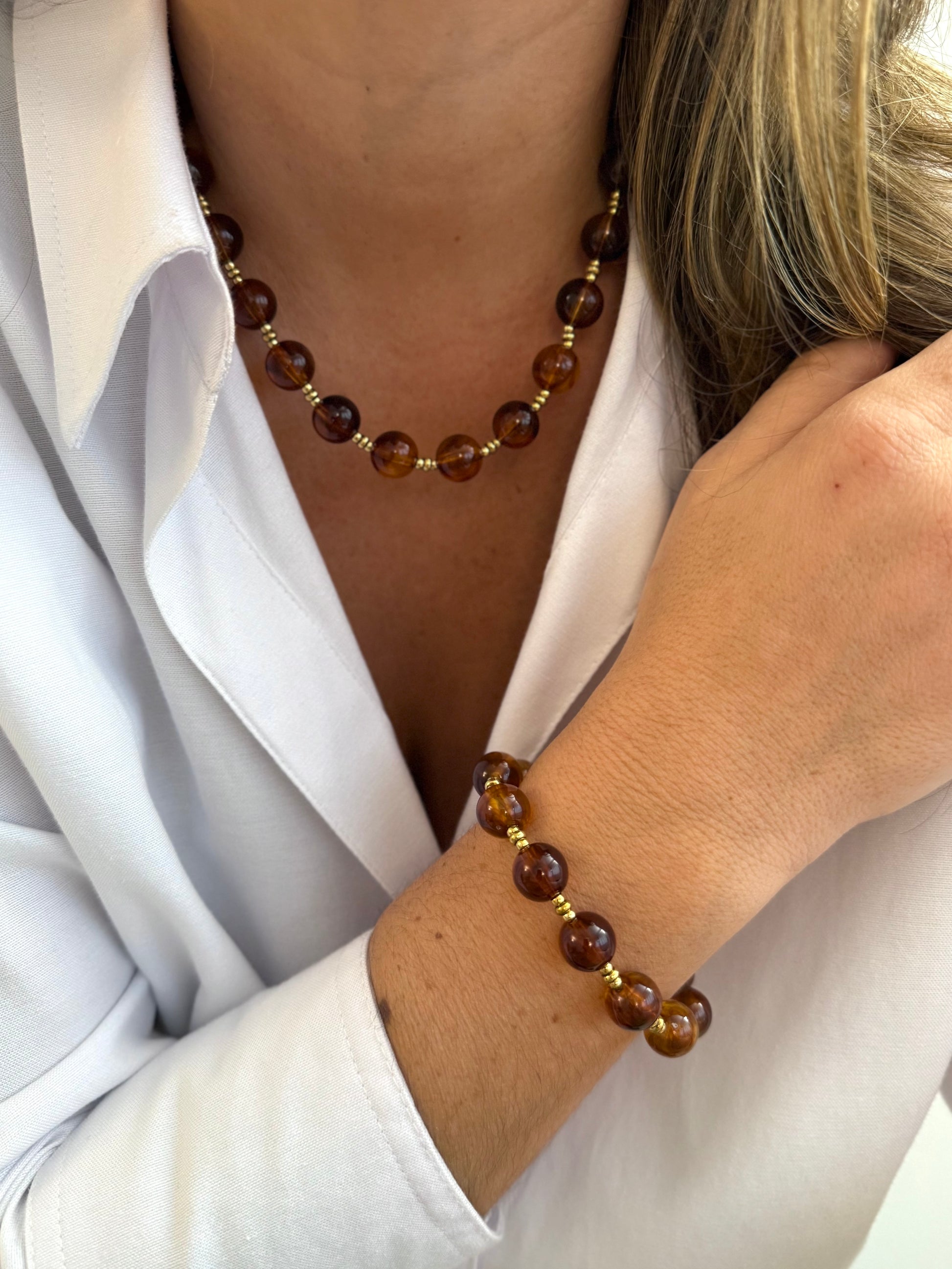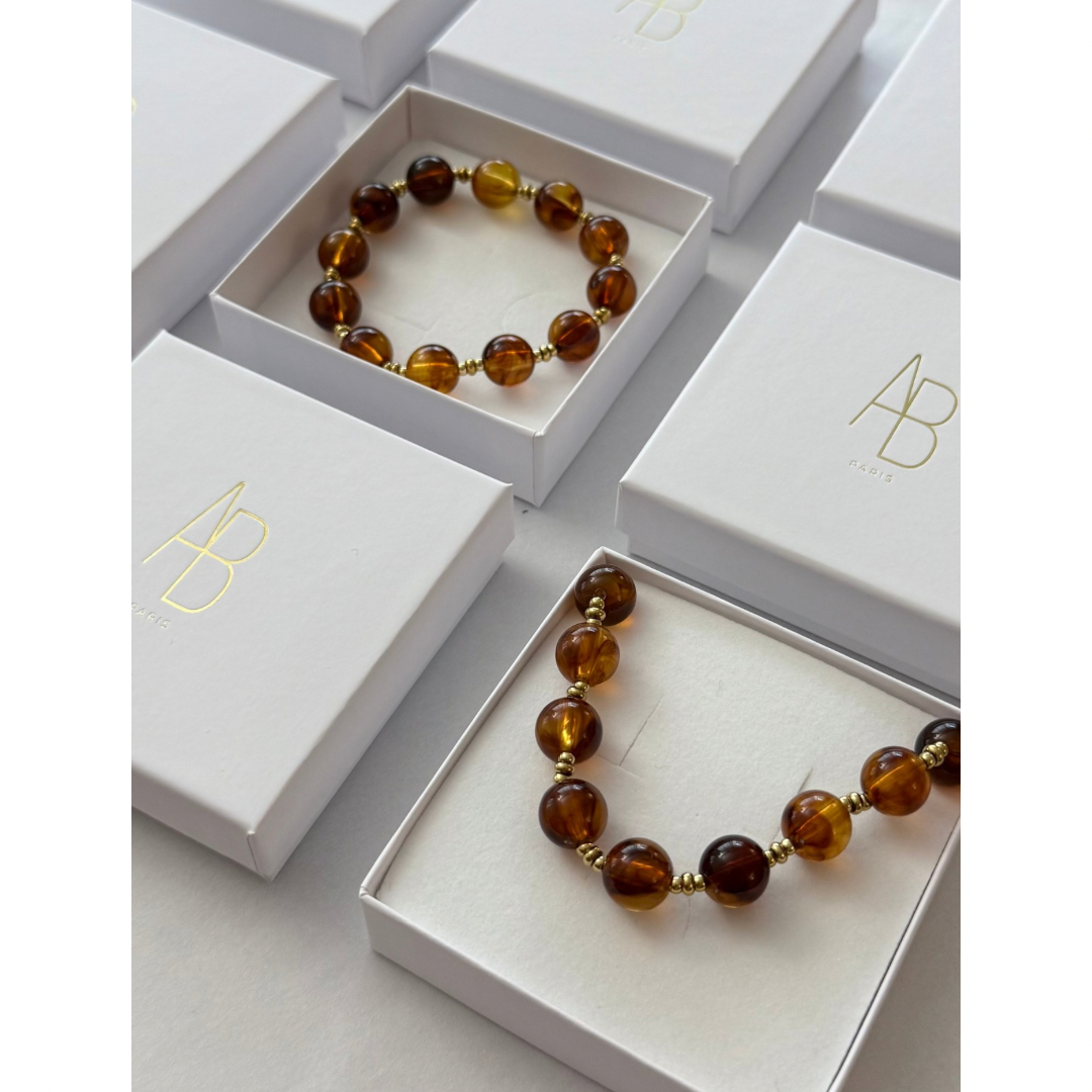 - Ce duo est composé d´un collier et d’un bracelet en résine aux couleurs tendances