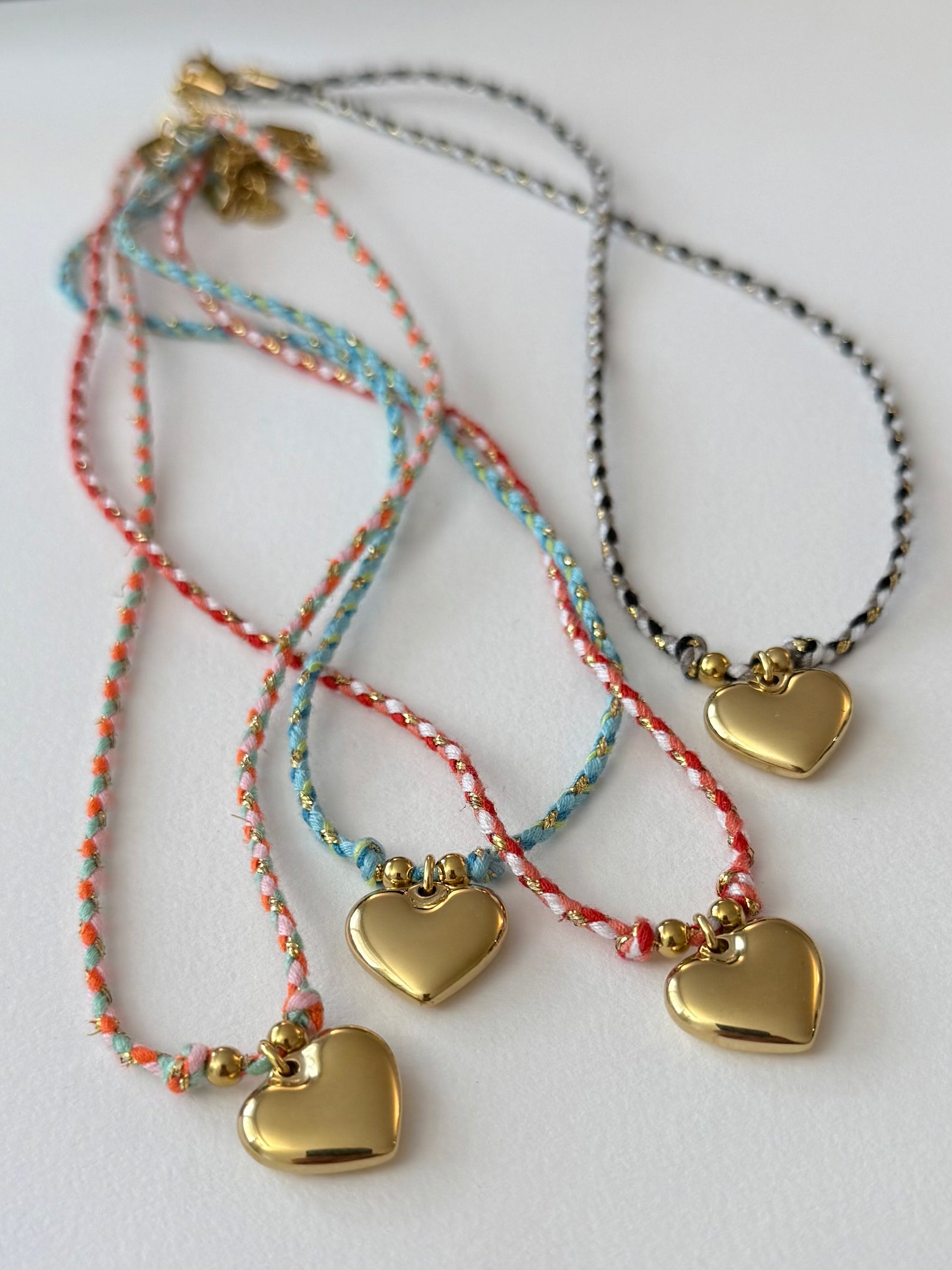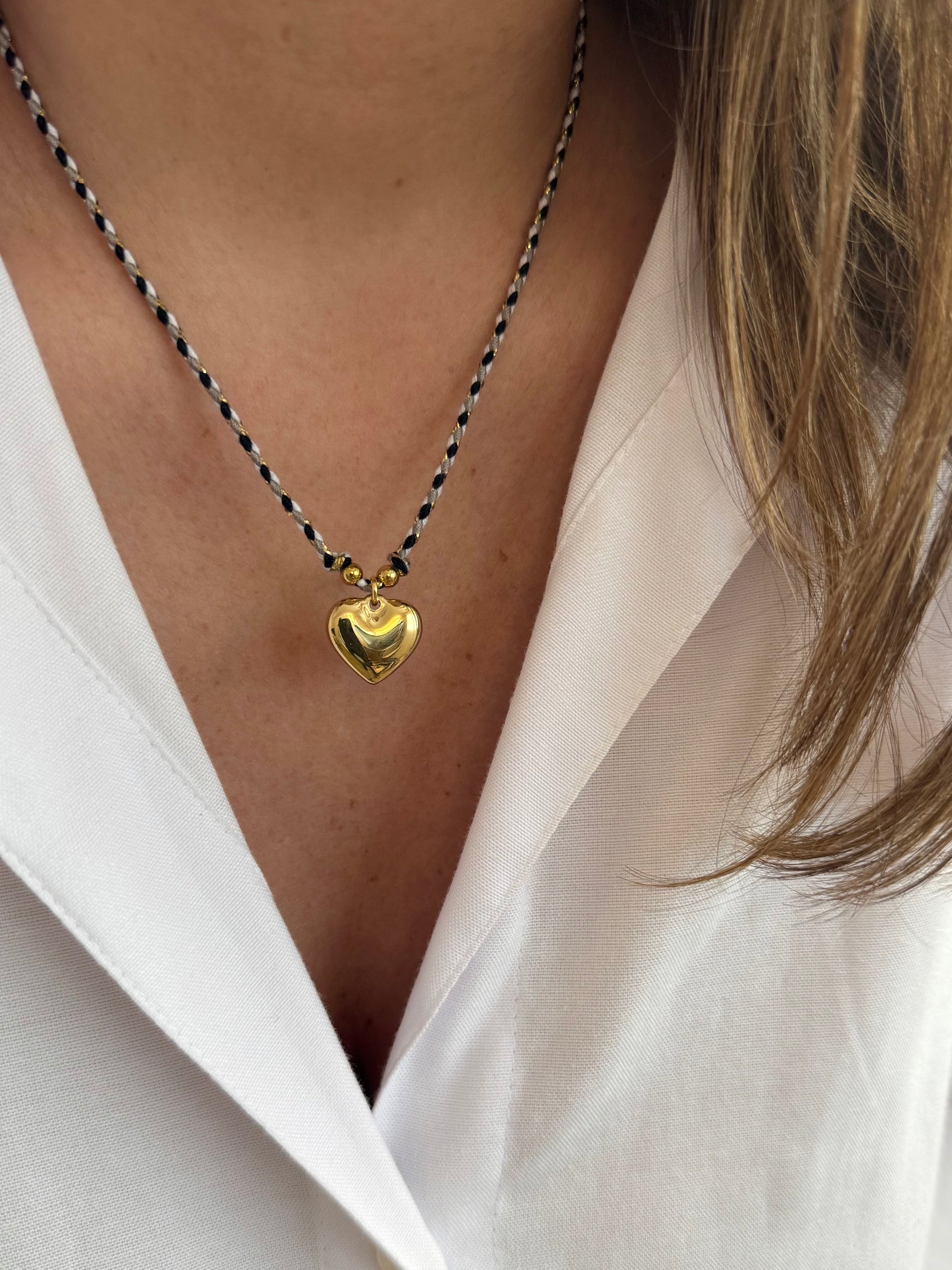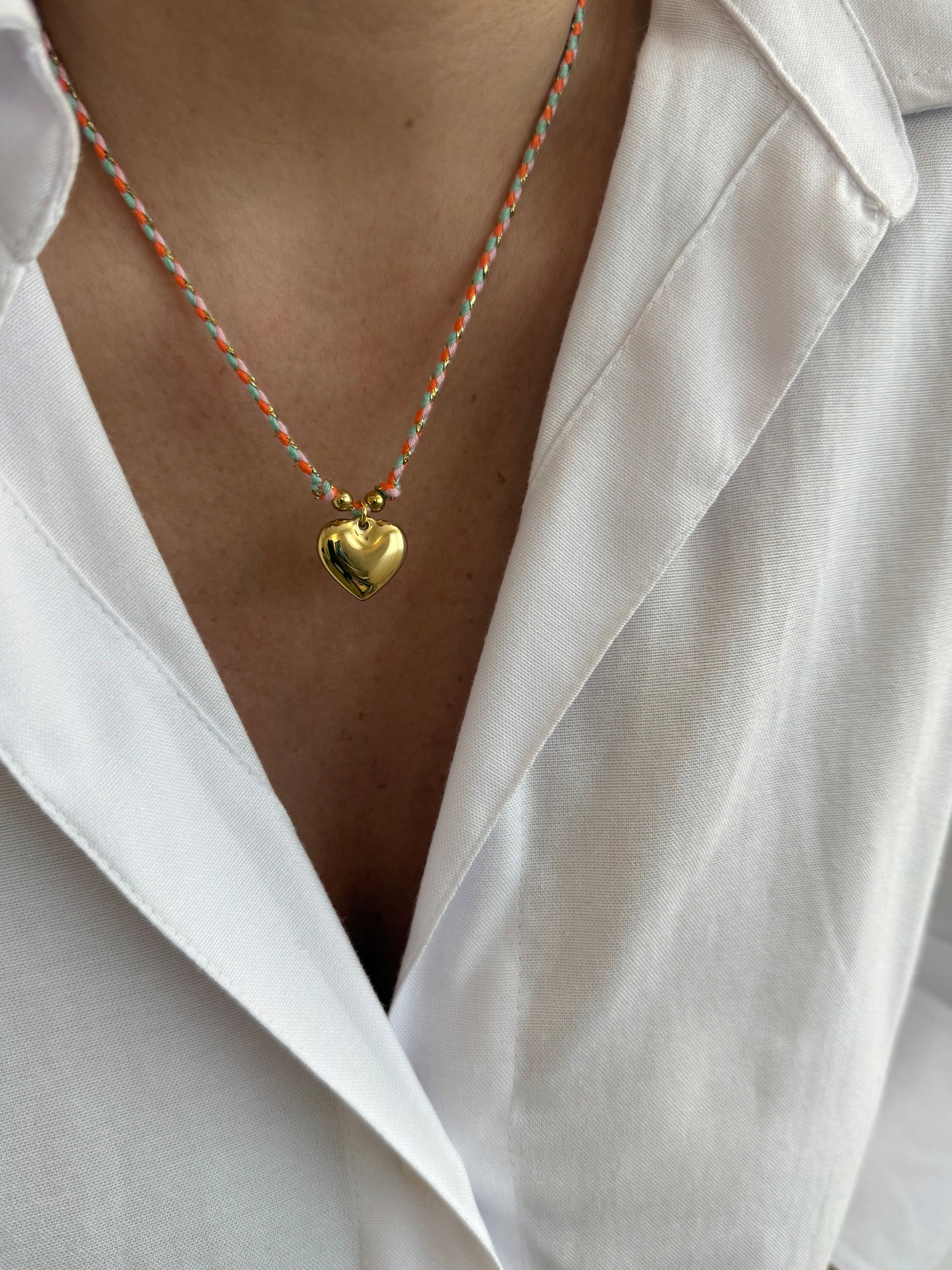 - Collier cordon orné d’un pendentif coeur en acier inoxydable