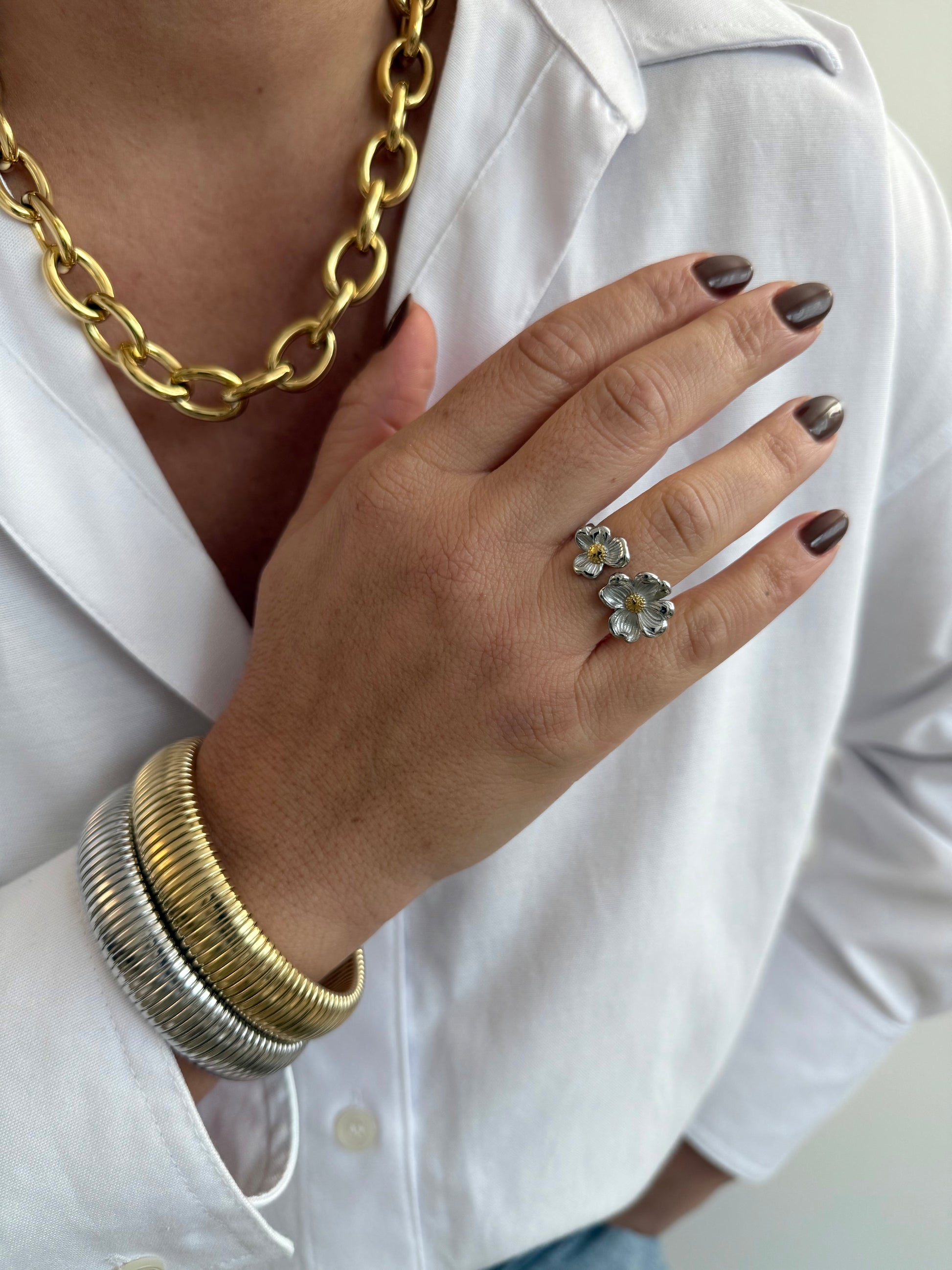 Double Fleur - doré, argent ou bicolore