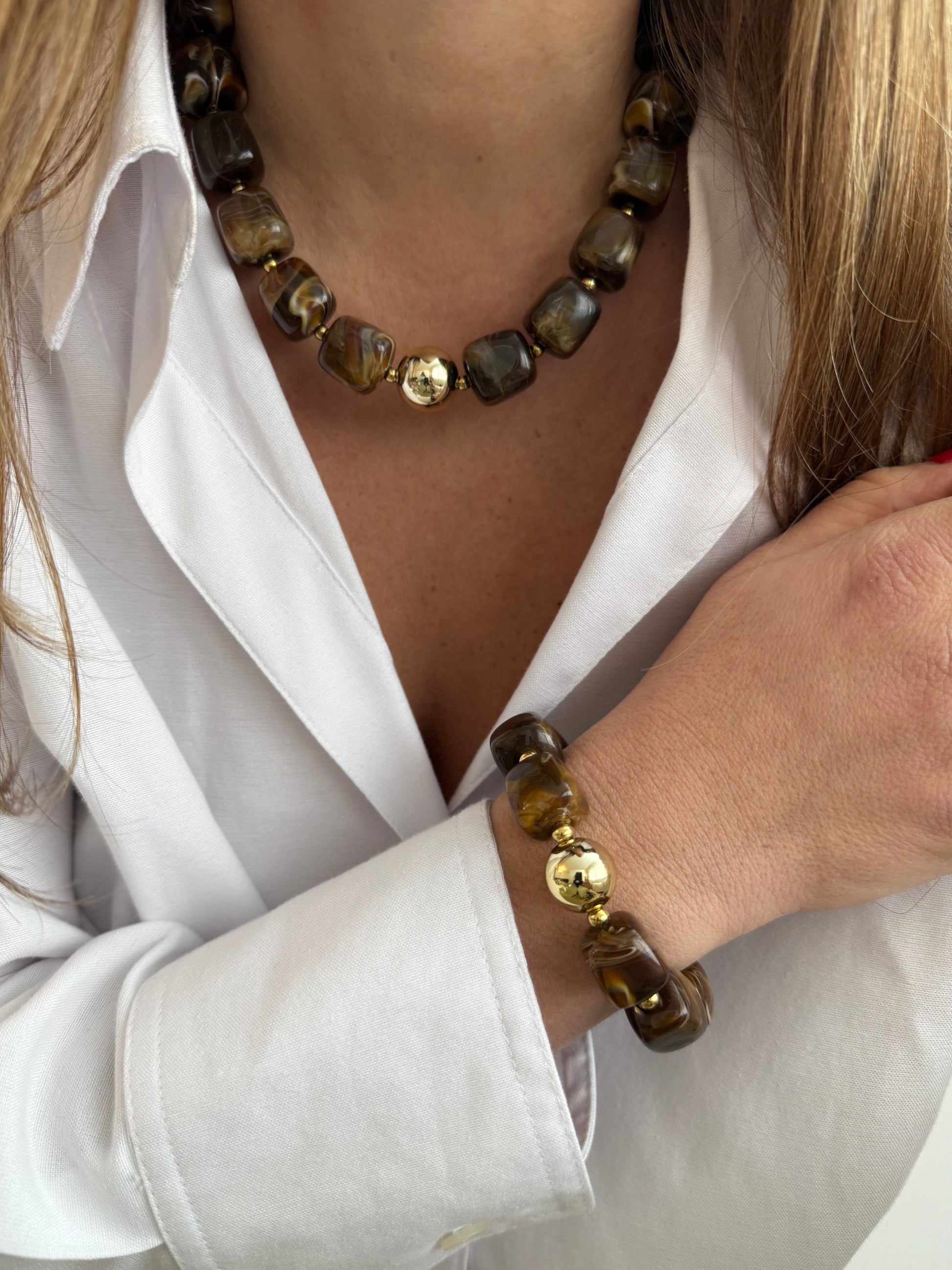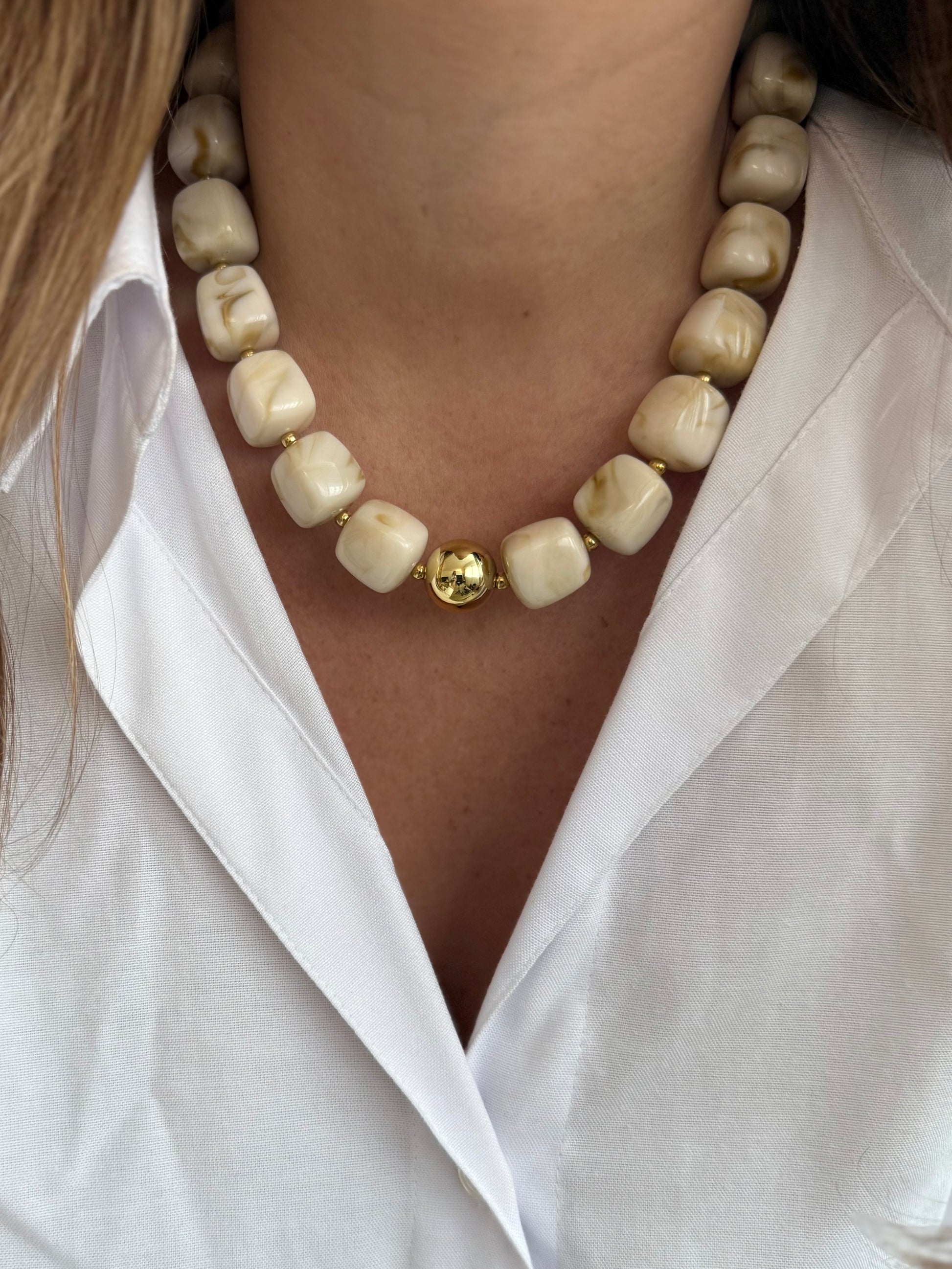 - Collier en acier inoxydable et perles en résine