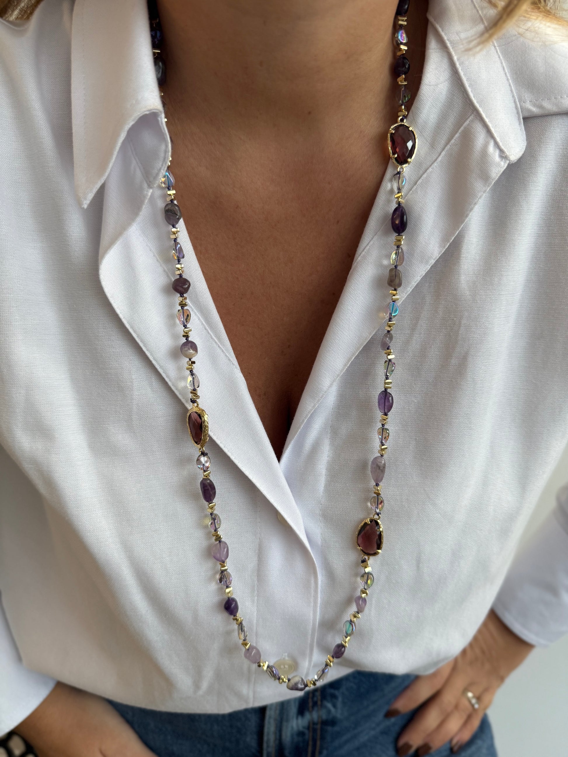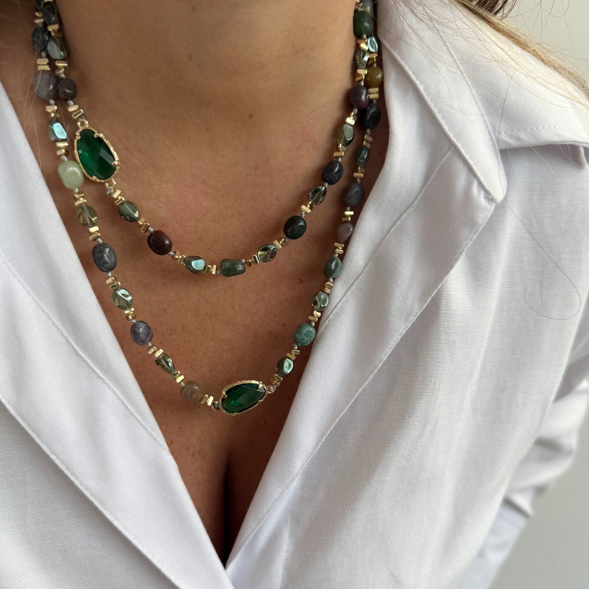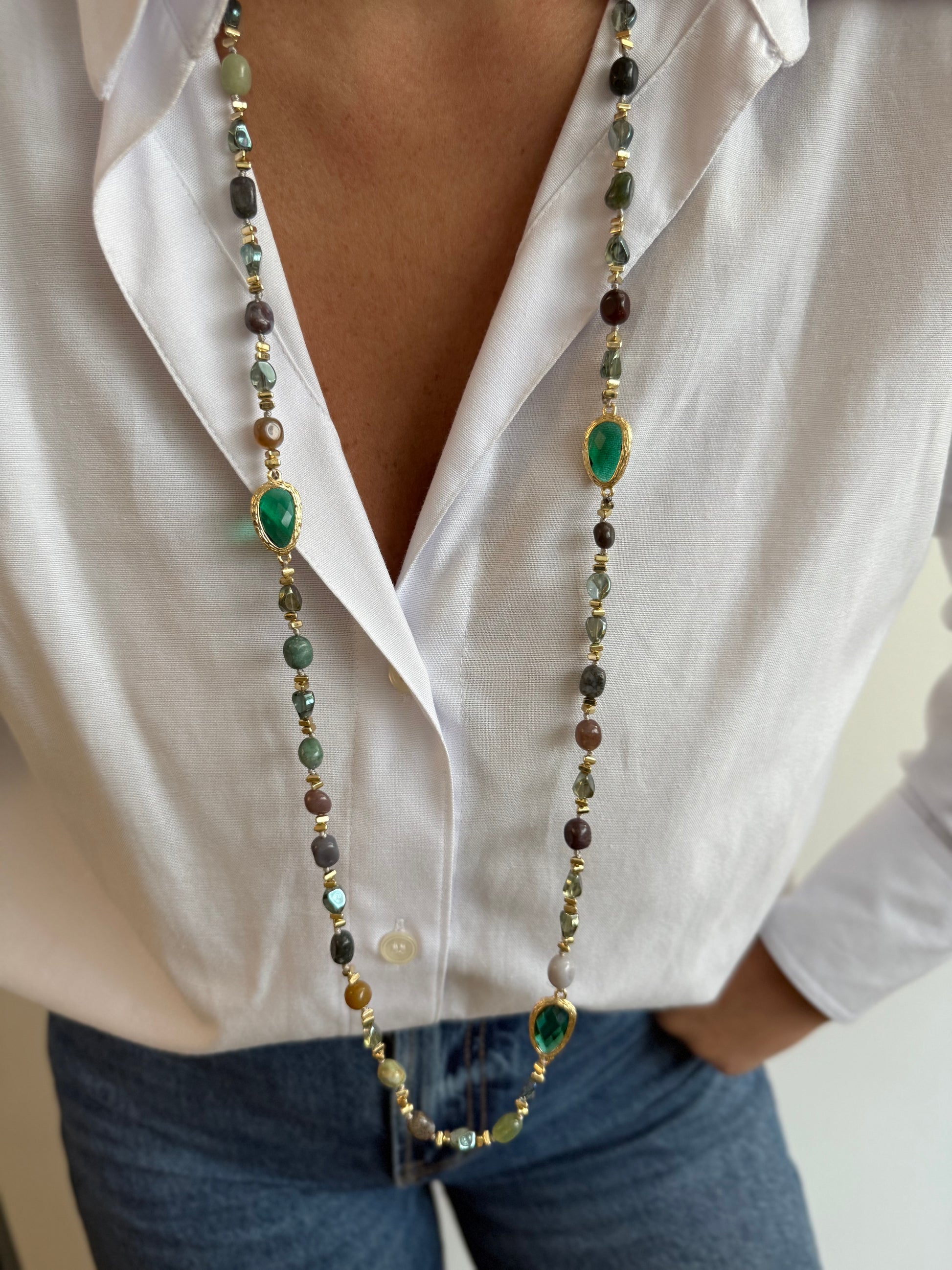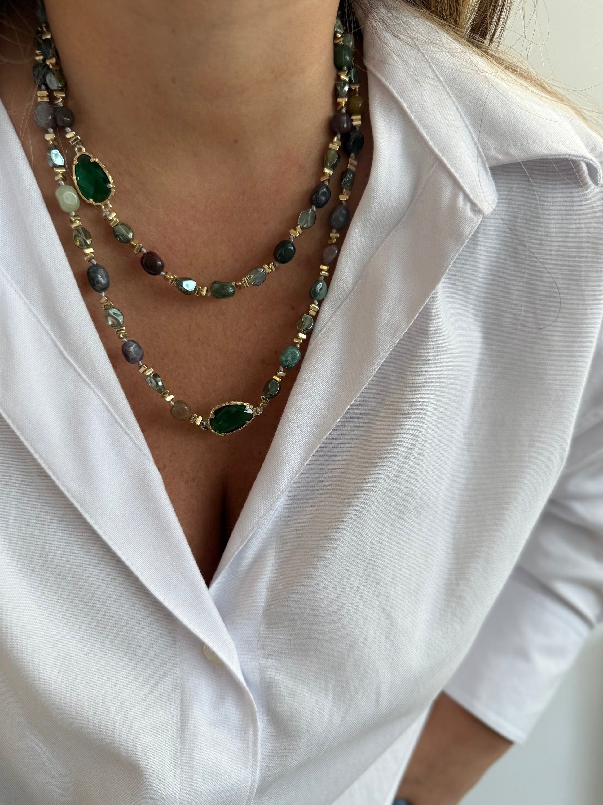 - Collier en acier inoxydable, perles naturelles et perles de verre
