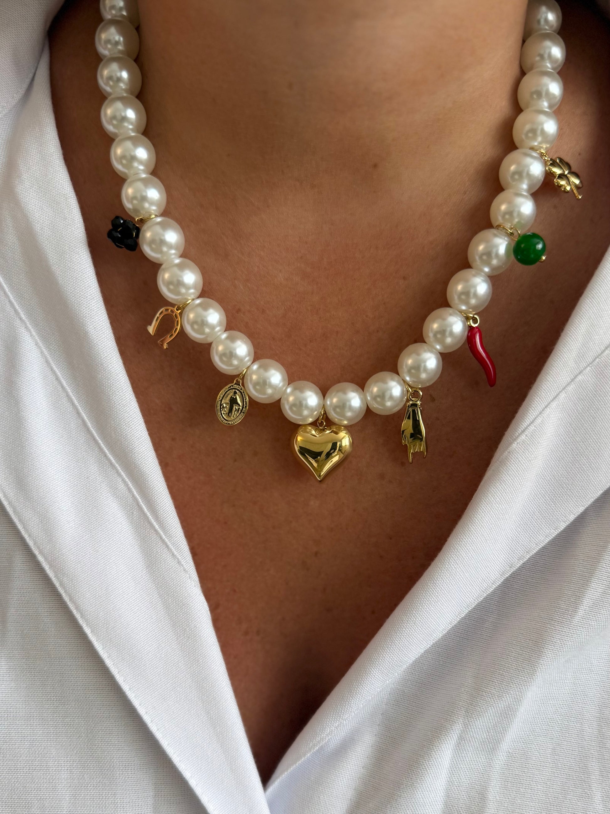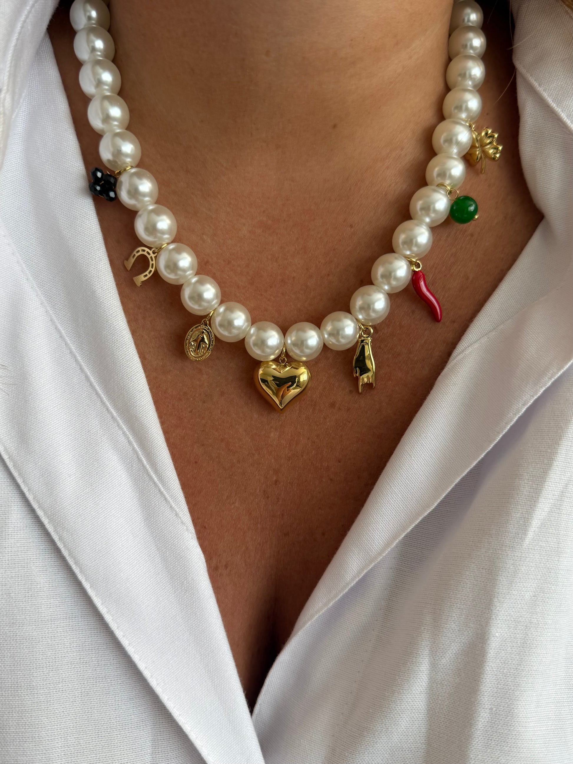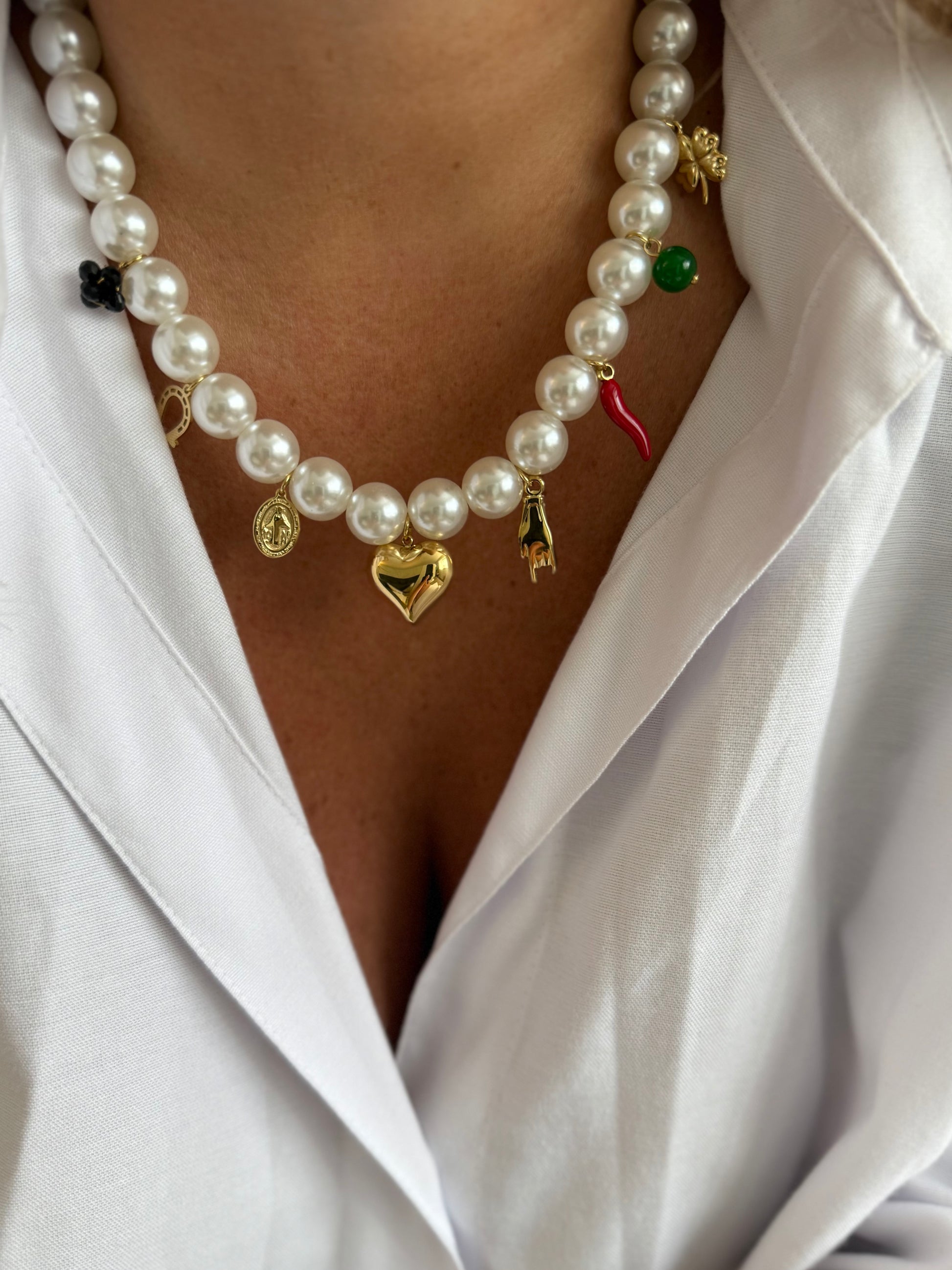 - Collier en acier inoxydable et perles artificielles