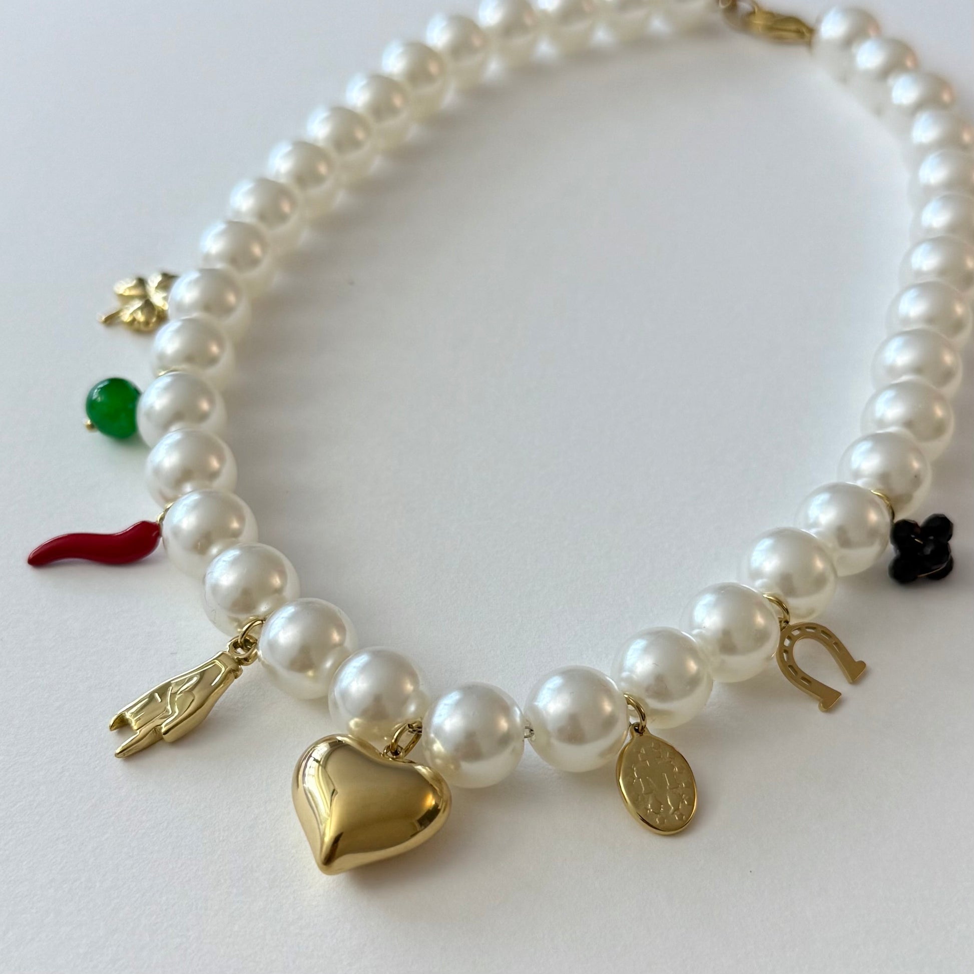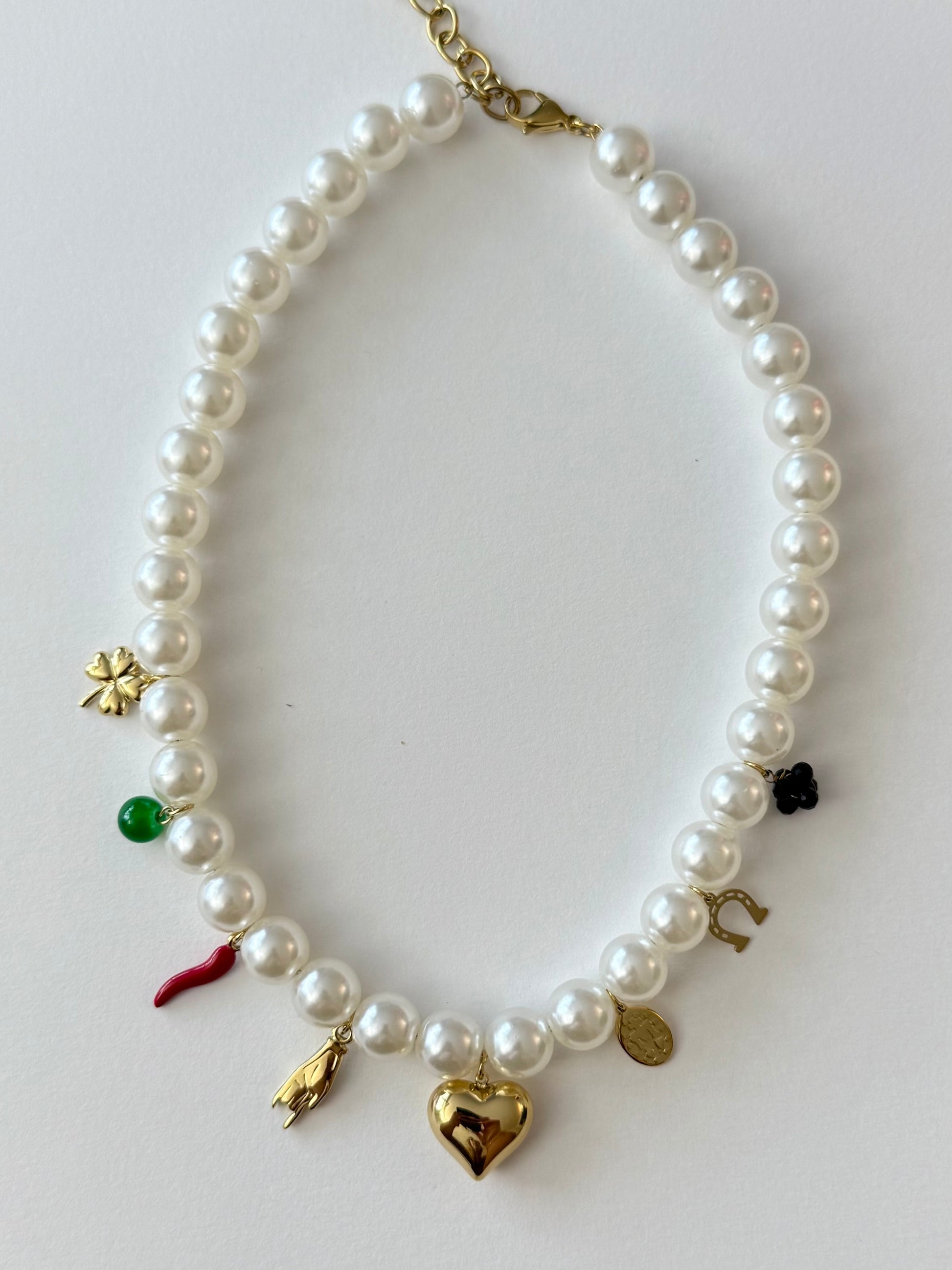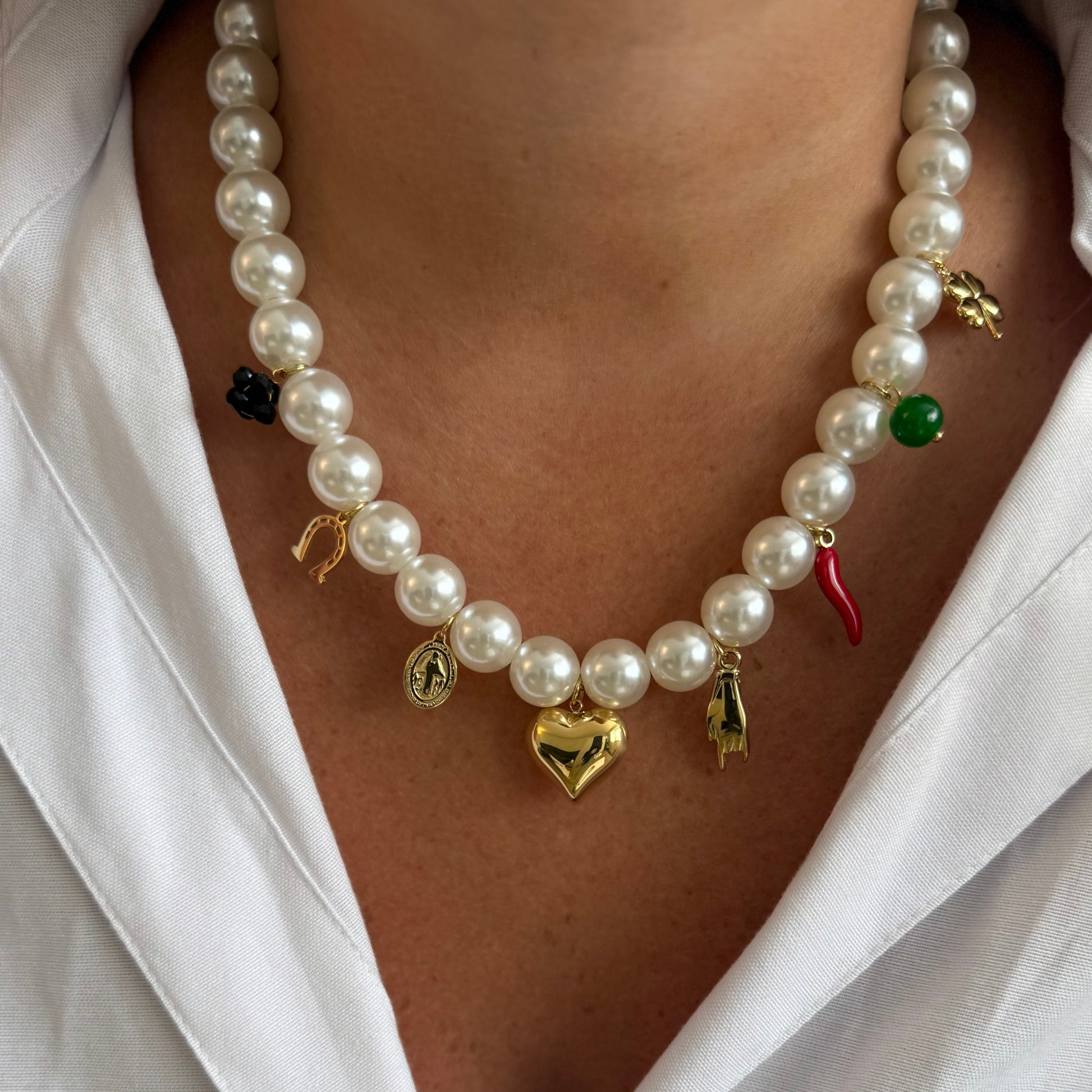 - Collier en acier inoxydable et perles artificielles
