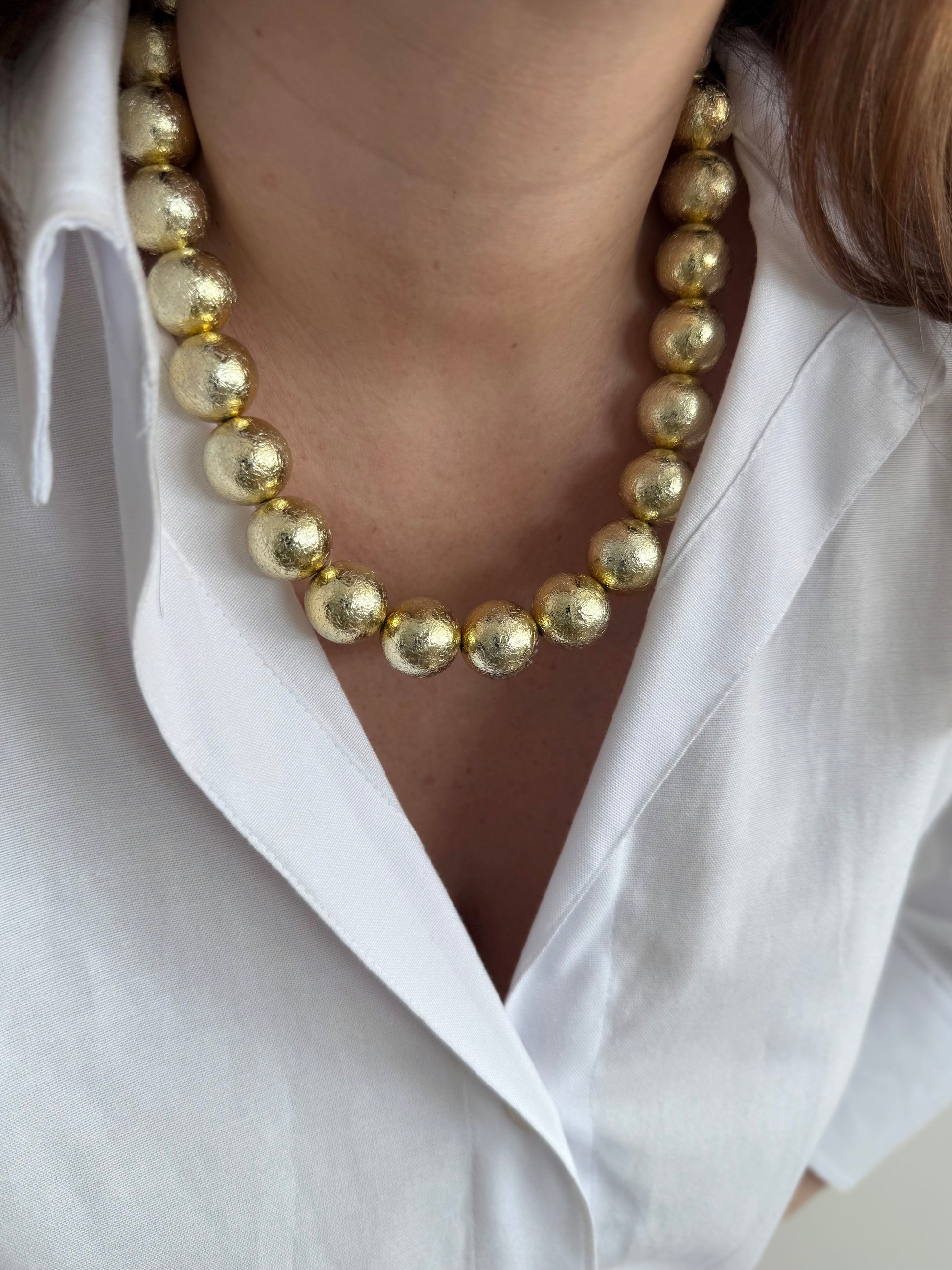 - Collier en acier inoxydable et grosses perles brossées